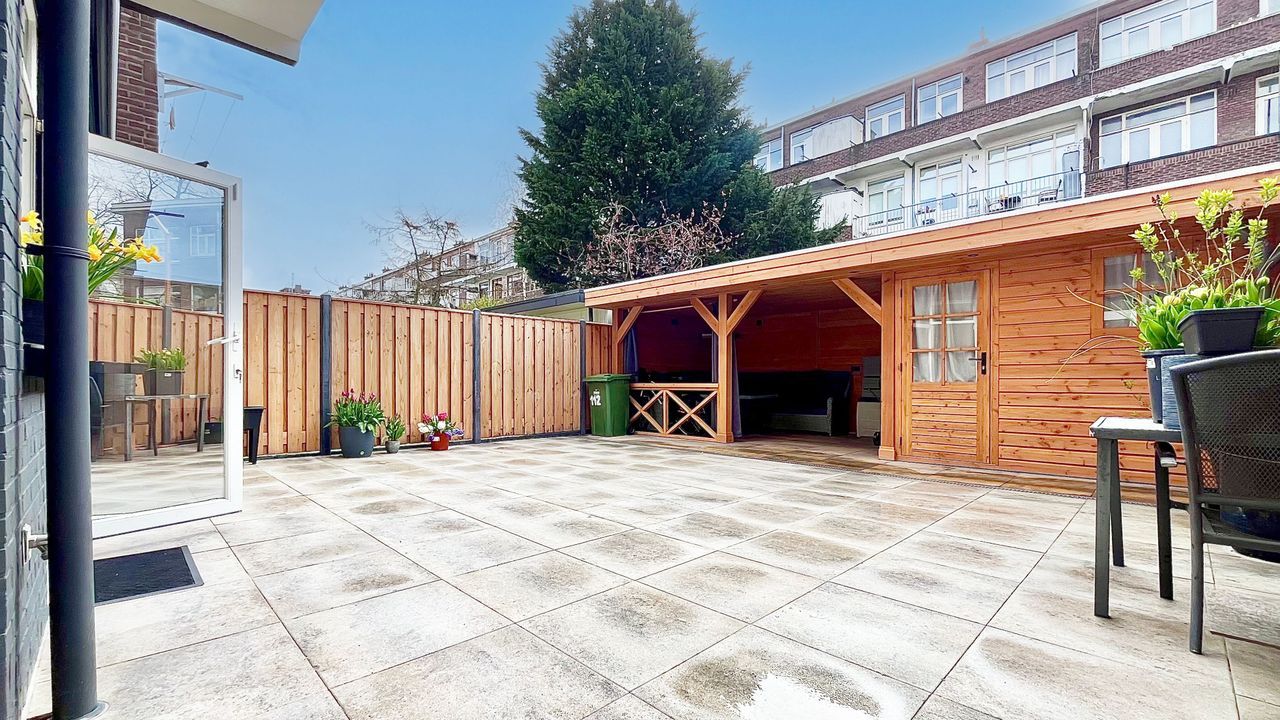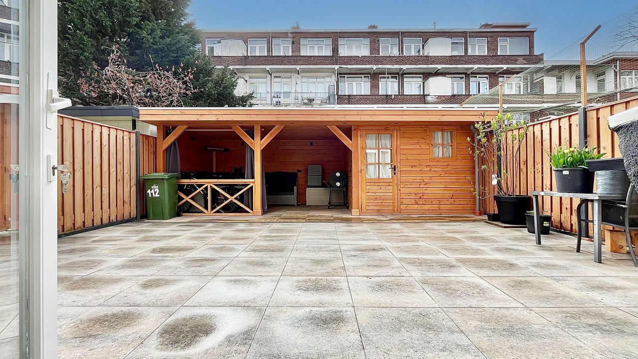 De verzorgde en betegelde achtertuin ligt zalig op het ZO. Brede markies aan de achterzijde. Je kan kiezen voor zon of schaduw, of onder de relaxte overkapping met zicht naar de achtergevel. De overkapping, althans het zitgedeelte, is 4,70 meter bij 2,61. En dan nog een aparte berging (van 2,84 x 2,64) voor de fietsen, visspullen, koffers, kratjes of andersoortig hobby-materiaal. In deze berging ook stroom en water.