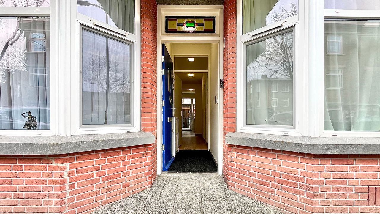 Indeling; entree via straat, alwaar eigen toegang. Hal, tochtdeur en lange gang. Dan naar de woonkamer, van 7,36 meter lang en 3,47 meter breed. Speelse erker met zijraam aan de voorzijde.