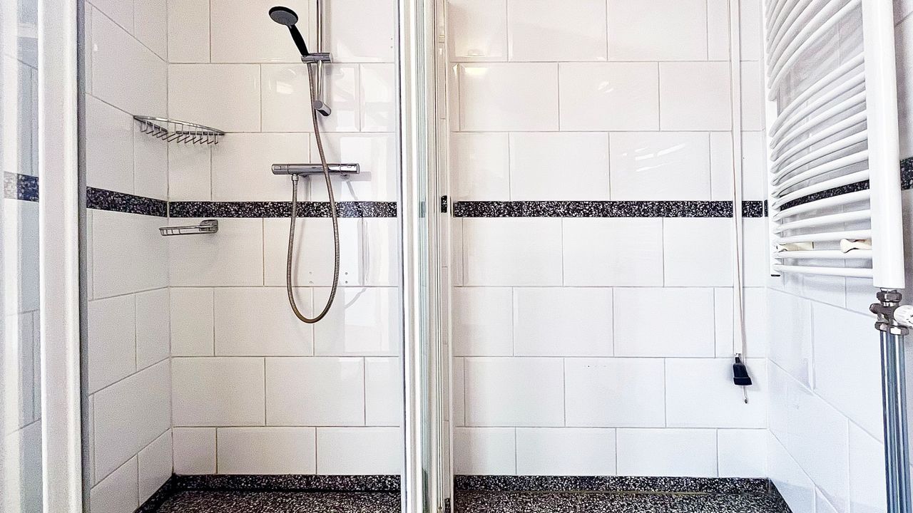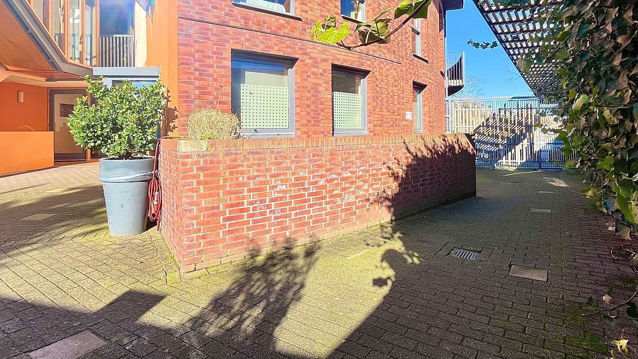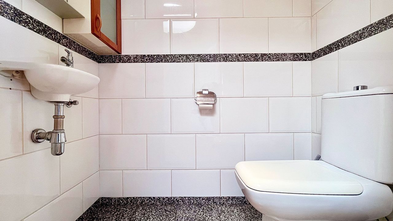 Step into your private entrance hall featuring beautiful parquet flooring, a modern toilet with washbasin, and the meter cupboard. Two playful round skylights flood the space with natural daylight. There’s also a separate utility cupboard housing your own central heating combi boiler — and with a little creativity, this space can easily accommodate a washing machine in the future.