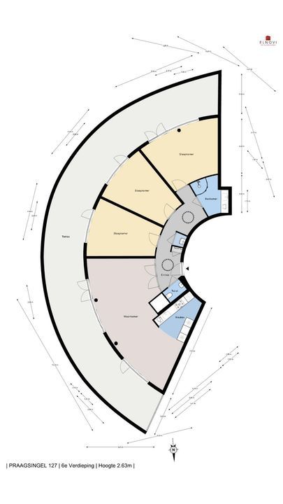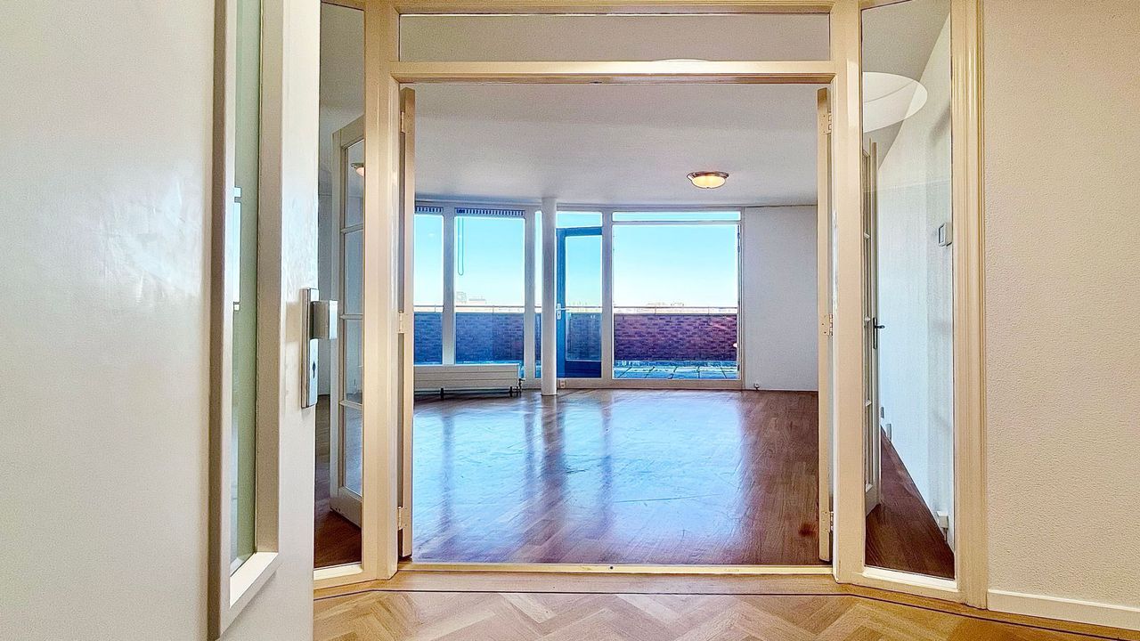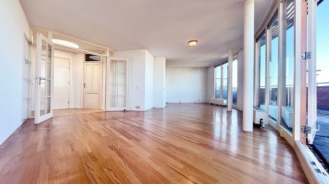 Lift naar de topverdieping op de zesde verdieping, alwaar slechts 2 woningen zijn gelegen. Ruime halfronde grote algemene hal waarop u direct uitkomt met de lift.