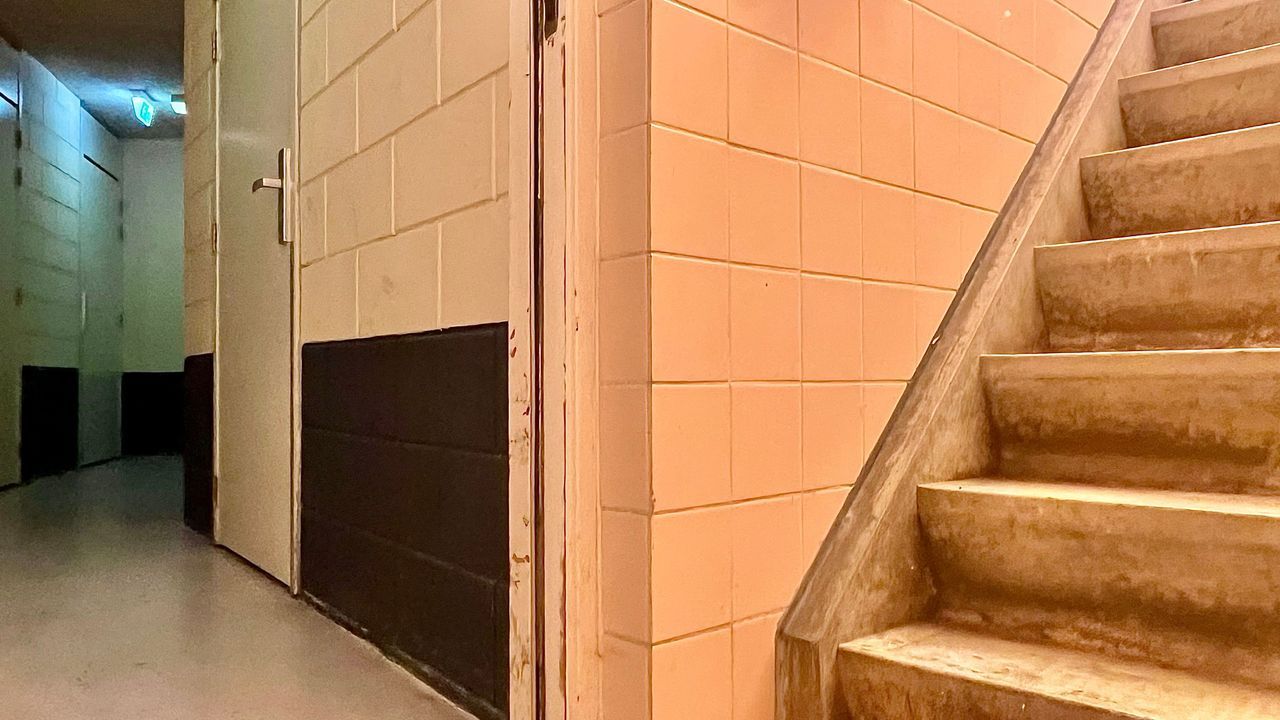 Secure, gated entrance with intercom and mailboxes. Well-kept hallway leading to the staircase and lift, plus a separate staircase to the private storage room in the basement (approx. 3.52m long and up to 2.66m wide — plenty of space!).