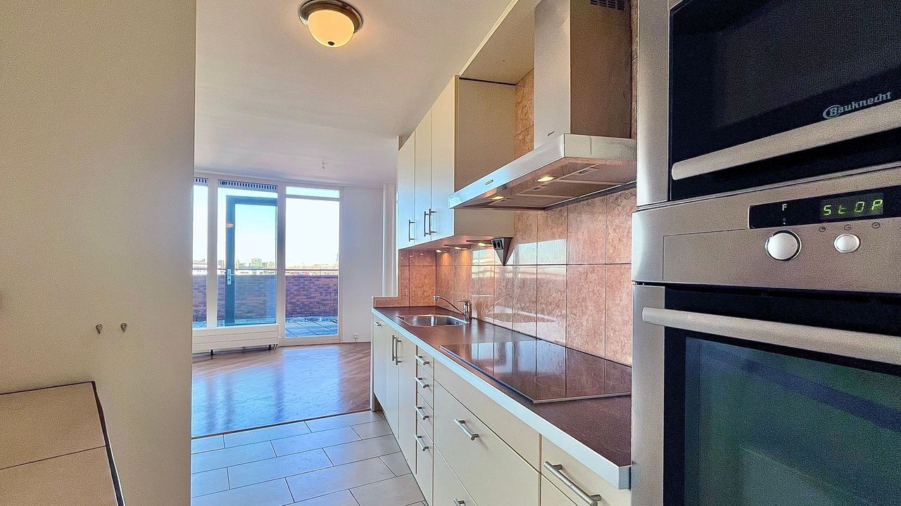 Middenin rustig gelegen Wateringse Veld, ligt dit fraaie 'penthouse' op de zesde woonverdieping. Geen bovenburen en slechts 2 appartementen op de topverdieping! Betreft een riant 4-kamerappartement met 3 slaapkamers, berging, grote woonkamer en zeer ruim terras, waar je kiest voor zon of schaduw.... Fantastisch weids uitzicht en alleen maar privacy. Wie wil dit nou niet?