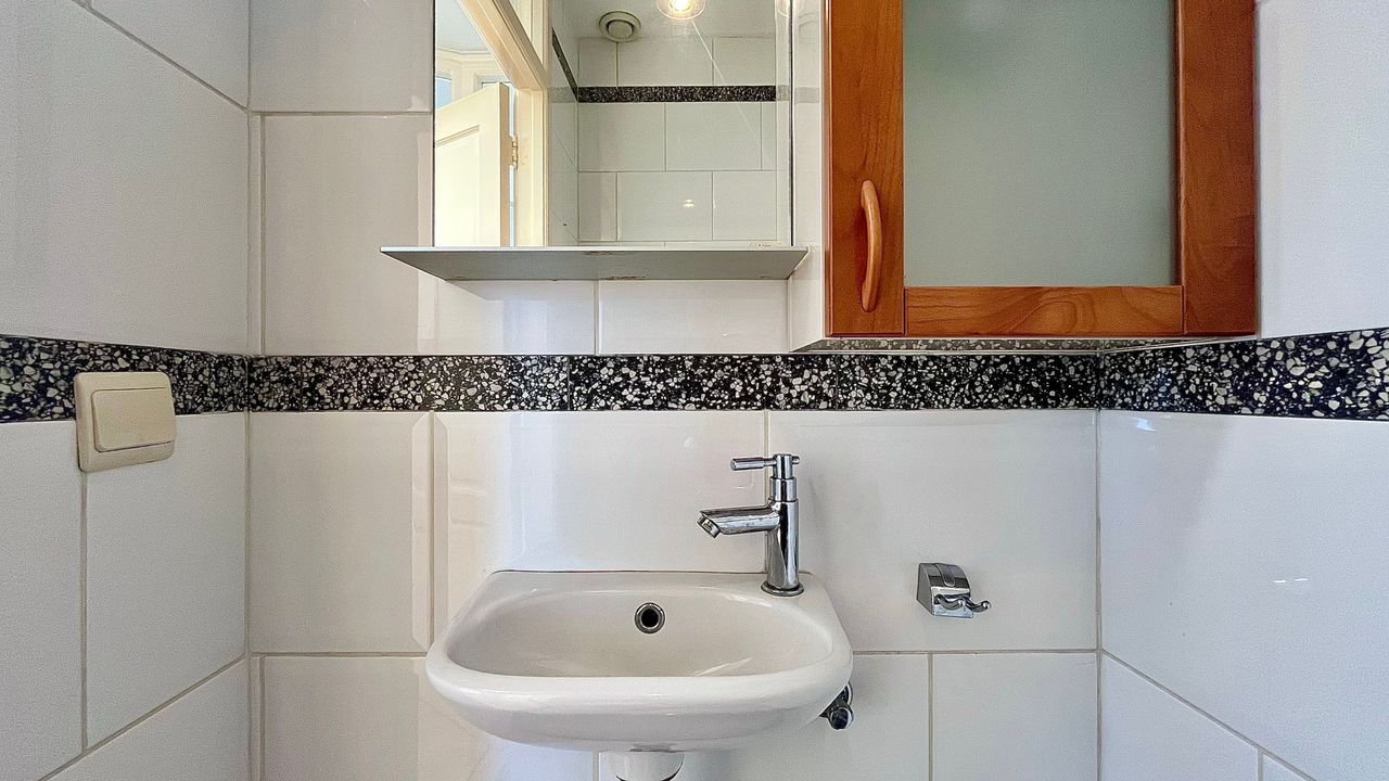 Dan uw eigen entree met hal, parketvloer, modern toilet met fontein. Meterkast. Twee speelse ronde dakramen waardoor veel daglicht. Separate kast waar opstelplaats van uw eigen CV-combiketel. Met een beetje kunst- en vliegwerk plaatst u hier in de toekomst ook uw wasmachine.