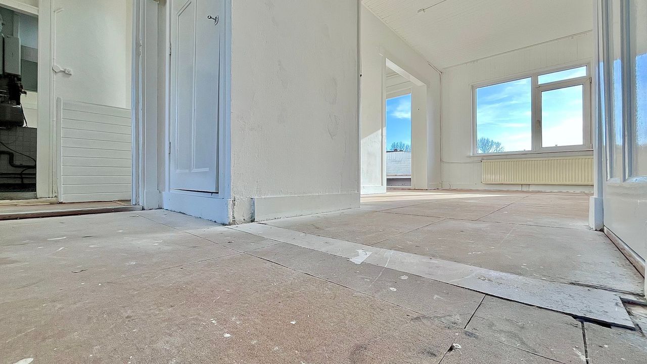 De vorige indeling was dat de woonkamer was gehalveerd en er daarom 3 slaapkamers waren. Door de voor- en achterkamer weer open te breken heb je weer 1 ruime woonkamer.