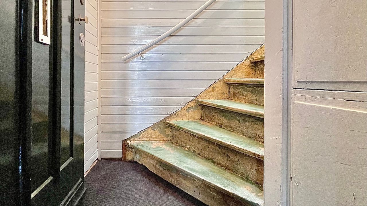 Private entrance at street level, shared stairwell leading to the first floor where your own front door is located. Entrance hall with meter cupboard and staircase to the second floor (top floor). Landing with separate toilet and separate bathroom featuring a shower, fixed washbasin, and installation for the combined boiler and heat pump.