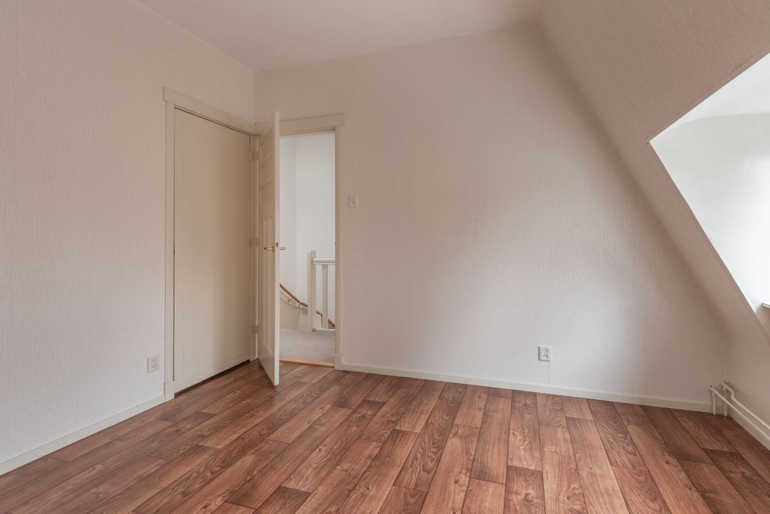 Trap naar de tweede (bovenste) verdieping alwaar L-vormige overloop, tweede toilet. Twee slaapkamers aan de voorzijde van resp. 3.71 meter bij 3,50 meter en 2,70 meter bij 2,14 meter. En aan de achterzijde 4,39 meter bij 3,50 meter.
