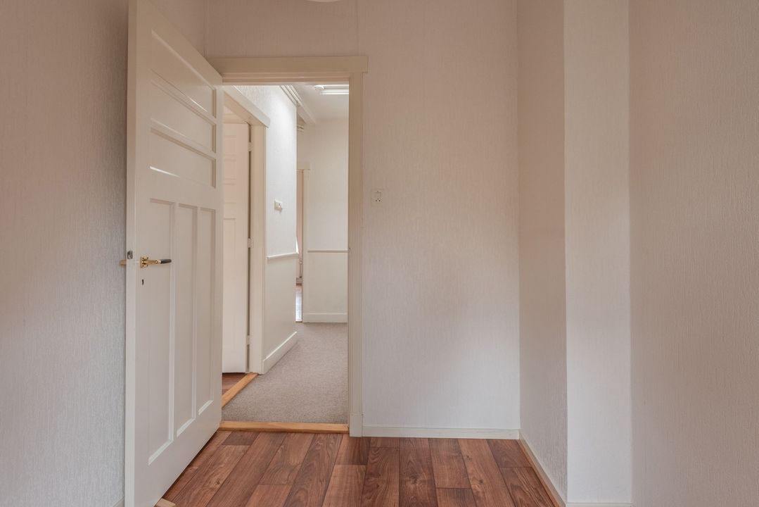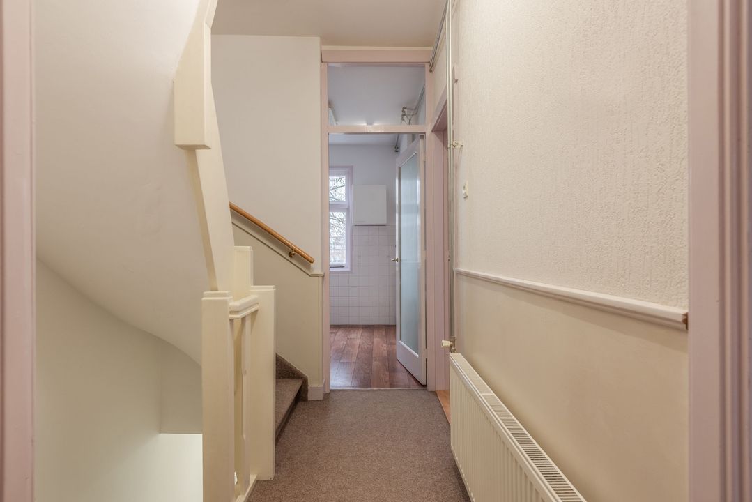 Indeling; stoep, voortuin met recht van overpad naar eigen voordeur. Entree, hal van 2.10 meter diep en trap naar boven. Eerste etage overloop met apart toilet en fonteintje.