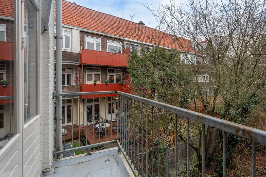 Balkon aan de achterzijde van de eetkamer, via openslaande deuren te bereiken. Deze meet 2,70 meter bij 0,95 meter.